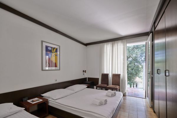 Le camere Koversada si trovano sull’omonimo isolotto, vicino alla spiaggia nell’ambito di una serie di padiglioni da 8 a 16 stanze. Gli ospiti hanno a disposizione camere doppie e triple. Camera Doppia Standard: semplici e confortevoli con bagno, dispongono anche di un balcone privato per godersi momenti all’aperto circondati da ulivi e boschi. 19 qm. Camera Doppia Standard con letto aggiuntivo: semplici e confortevoli con bagno, sono dotate di letto supplementare per ospitare fino a tre persone. Dispongono anche di terrazza privata per godersi momenti all’aperto circondati da ulivi e boschi. 19 qm. Dotazioni della camera: bagno con doccia, asciugacapelli, culla (su richiesta), balcone o terrazza.