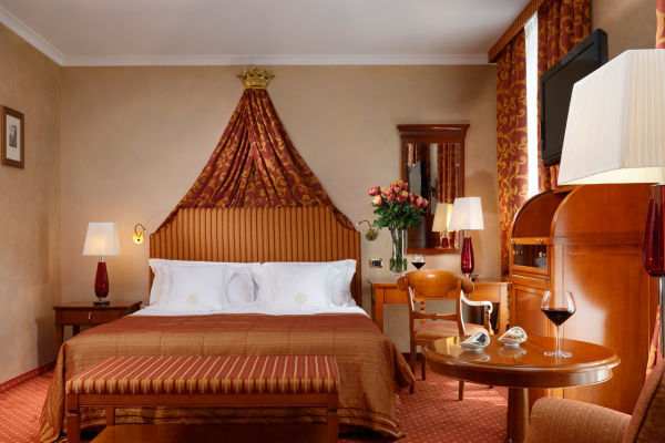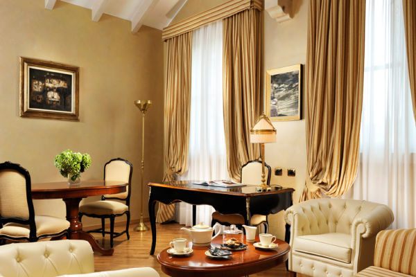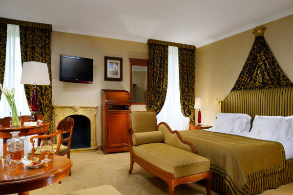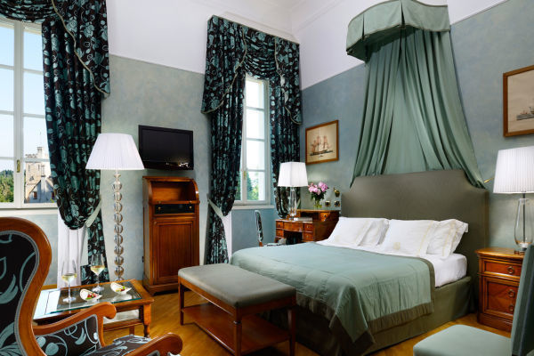 JUNIOR SUITE 2 PERSONE: Junior suite di circa 40 mq, ampia e lussuosa, dotata di connessione wi-fi gratuita, scrivania e TV LCD con lettore DVD. Alcune sistemazioni si affacciano sui giardini del Castello. Il minibar è fornito di snack dolci e salati. Questa sistemazione dispone di pavimenti in legno o moquette, lenzuola in puro cotone e bagno in marmo con accappatoi e set di cortesia.