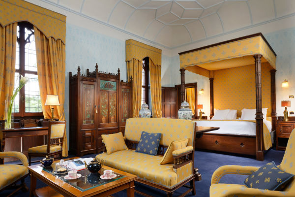 SUITE SUPERIOR 3 PERSONE : Suite adatta ad ospitare 3 persone, di circa 63 mq, spaziosa e confortevole, dispone di una terrazza privata con vista sul Castello e sul suo parco. Occupa un edificio separato nel parco del Castello, a circa 250 metri dall'edificio principale, ed è arricchita da mobili d'epoca in stile Tudor. Dispone di minibar fornito di snack dolci e salati e una scrivania da lavoro. I pavimenti sono in legno o in moquette e le lenzuola in puro cotone, mentre il bagno in marmo è completo di accappatoi e set di cortesia.