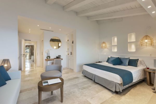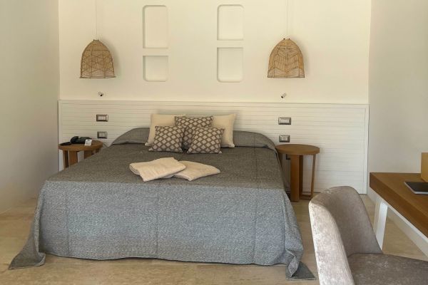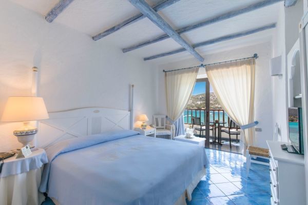 Le camere, eleganti ed accoglienti, sono progettate per assicurare il massimo relax e comfort durante il soggiorno. Sono tutte dotate di: aria condizionata, telefono e smart tv, Wi-Fi, cassaforte e bagno privato con asciugacapelli. Le Camere Classic, con letto matrimoniale o due letti singoli, situate nel corpo centrale o in quello adiacente, offrono patio o balcone attrezzato. Le Camere Deluxe sono situate principalmente nell'edificio principale e vantano un balcone o una terrazza con vista mozzafiato sulla baja. Le Junior Suite si trovano al primo e secondo piano del corpo adiacente e sono dotate di un piccolo angolo soggiorno, ideale per rilassarsi. Le Junior Suite Deluxe Vista Mare, recentemente rinnovate, offrono un ambiente open space con una vista diretta sul mare, regalando una sensazione di ampiezza e luminosità.