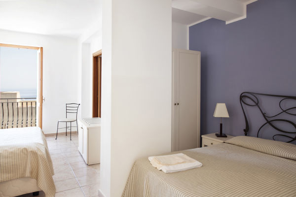 18, la maggior parte dotate di balcone privato, servizio privato con doccia, phon, telefono, tv sat, aria condizionata, minibar, cassaforte. Si suddividono in: classic (2/4 posti); vista mare laterale (1/2 posti); superior (2 posti). Alcune camere classic dispongono di angolo cottura (a pagamento). 2 camere (classic) adatte ai diversamente abili.