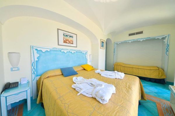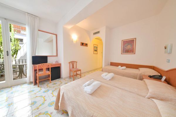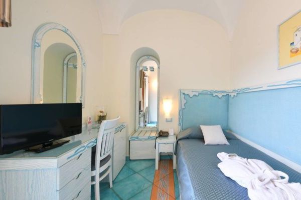 52, dotate di servizi privati con doccia, phon, telefono, tv sat, Wi-Fi, aria condizionata (15/06 - 15/09) e riscaldamento. Si suddividono in: standard (doppie, triple e quadruple), la maggior parte con balcone e ubicate tra il piano terra ed il 1° piano; superior (doppie, triple e quadruple), ubicate dal 2° al 4° piano e nella “Villa” a 10 m, recentemente rimodernate, tutte con balcone, cassaforte e frigobar; superior vista panoramica con balcone/terrazzo (doppie e triple), ubicate tra il 2° e il 4° piano; junior suite (doppie), situate al 4° piano, molto spaziose e con area soggiorno.