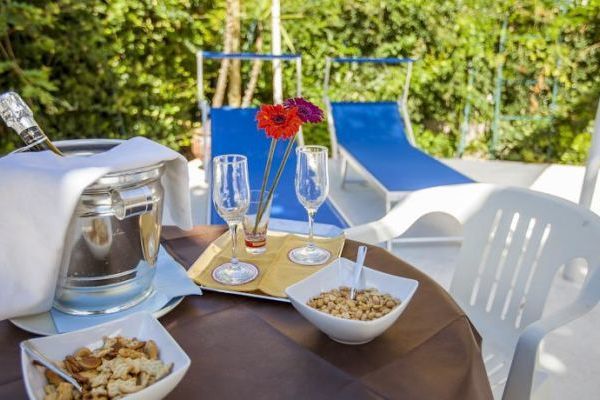 Servizio Spiaggia (su prenotazione) per soggiorni di min. 7 notti: Pacchetto settimanale (6 ingressi) 1 persona Aprile/Maggio/Giugno € 84, Luglio/Settembre € 96, Agosto € 150; Pacchetto settimanale (6 ingressi) 2 persone Aprile\Maggio/Giugno € 120, Luglio/Settembre € 144, Agosto € 216; Pacchetto settimanale (6 ingressi) 3 persone Aprile\Maggio/Giugno € 180, Luglio/Settembre € 210, Agosto € 300.
