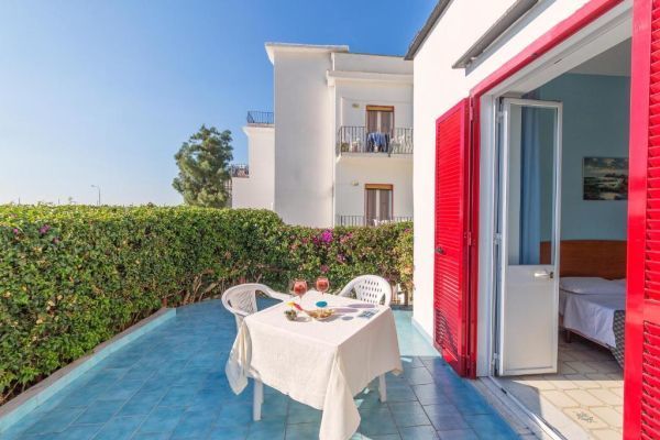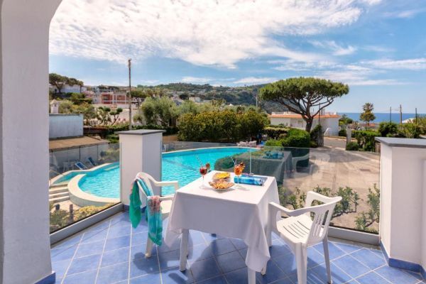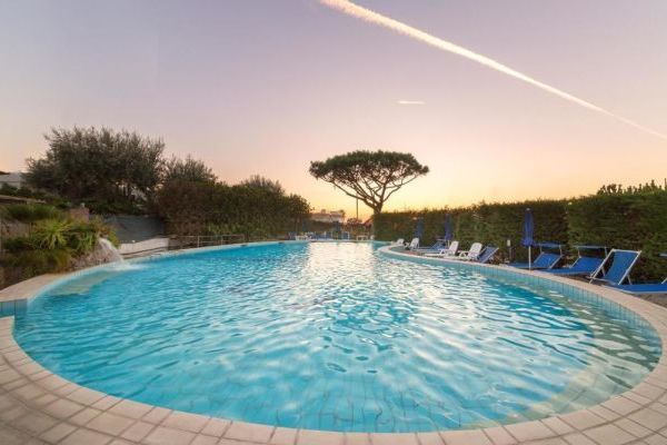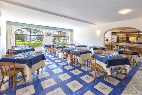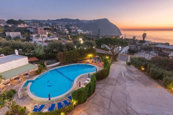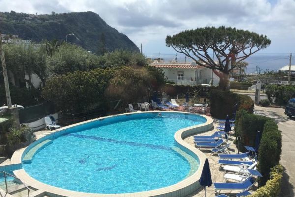 reception; ampia e luminosa sala ristorante dove assaggiare i piatti della cucina mediterranea con prodotti locali e menù a scelta; bar con servizio snack; sala tv. Piscina scoperta con doppia altezza, ideale anche per i bambini, idromassaggio e cascata cervicale; piscina coperta con geyser e cascata cervicale. Terrazza solarium attrezzata. Animali ammessi. Servizio navetta da/per la spiaggia di Citara e da/per Forio (a pagamento). Parcheggio esterno gratuito.