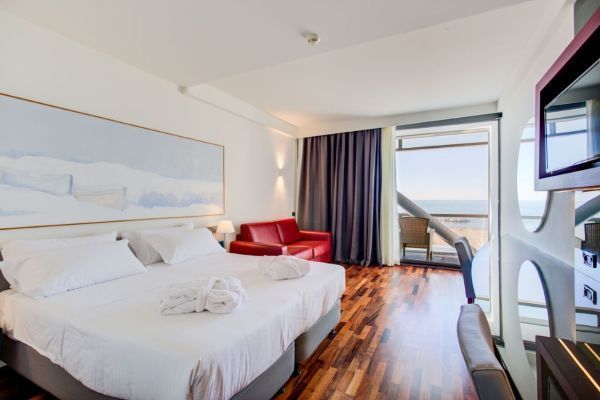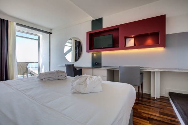 Confortevoli, eleganti e luminose, con spazi ricercati e vista eccezionale sul mare o su Piazza Primo Maggio: comfort piazza, comfort plus piazza, comfort mare, comfort plus mare, family family plus, junior suite mare.