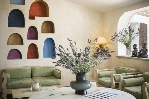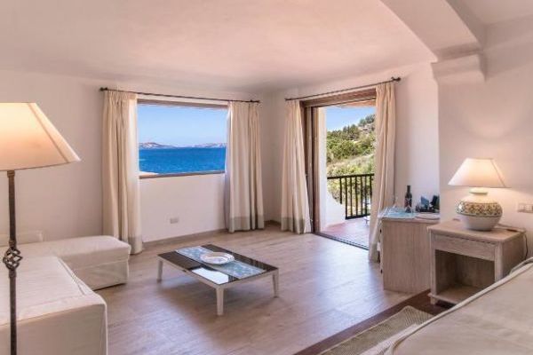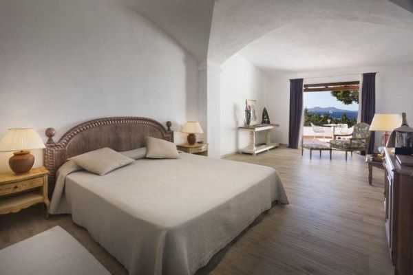 Le camere e le suite riflettono il classico stile architettonico sardo, evocando suggestioni smeraldine e mediterranee. Il bianco, colore predominante, è uno degli elementi più distintivi, accompagnato dal blu e dall'azzurro che richiamano il mare e il cielo. Le 119 stanze, la maggior parte delle quali recentemente rinnovate, sono divise in tre corpi edificati tra giardini fioriti e collegati da vialetti che conducono al mare sottostante.