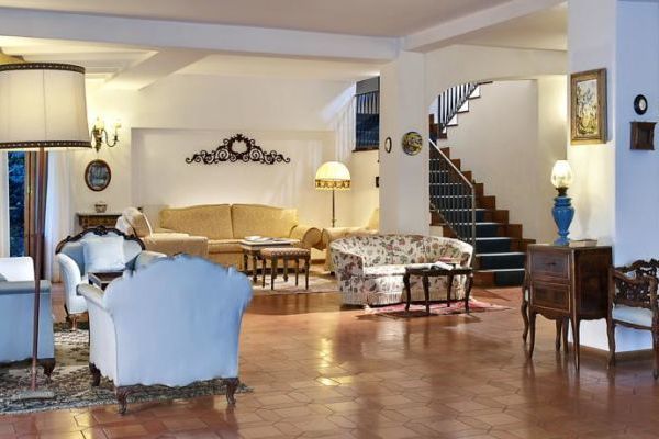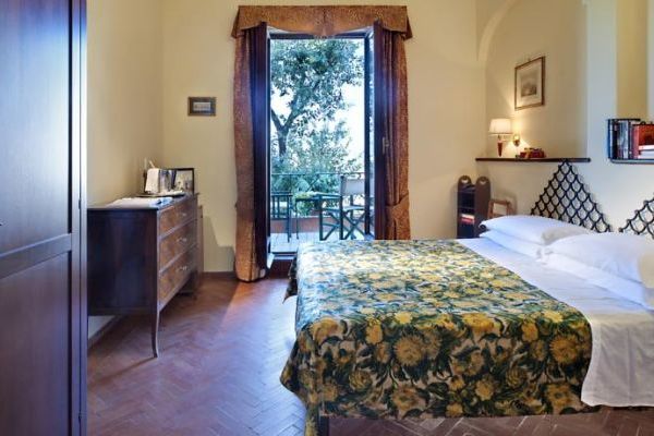 50, arredate con mobili d’epoca, alcune con balcone, sono dotate di servizi privati con doccia o vasca, telefono, tv sat, frigobar, cassaforte, aria condizionata (dal 15/06 al 31/08) e riscaldamento. Si suddividono in: standard, distribuite sui 3 piani del corpo centrale con affaccio sul giardino o sul cortile interno e nei corpi distaccati in giardino, costituiti da 2 o più unità che all’occorrenza possono essere comunicanti fra loro; suite, al piano terra con spazio esterno, composta da una camera matrimoniale ed una camera singola.
