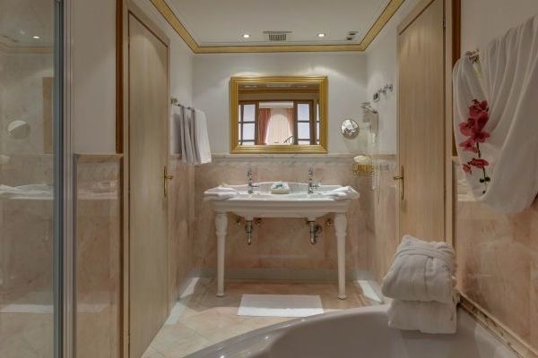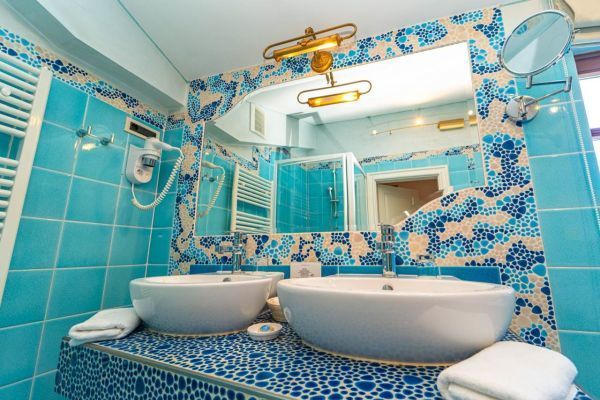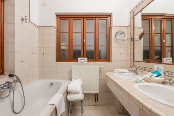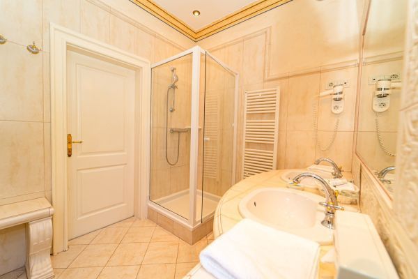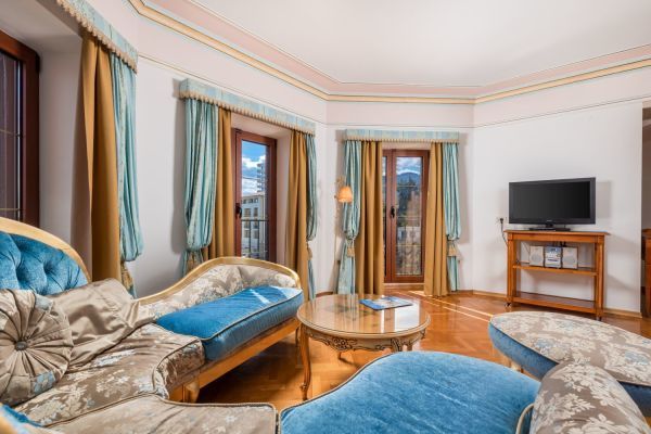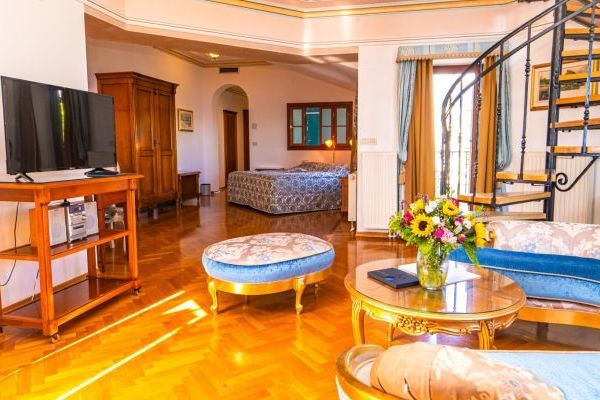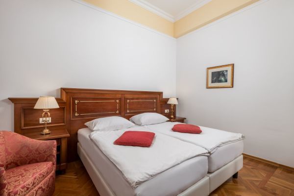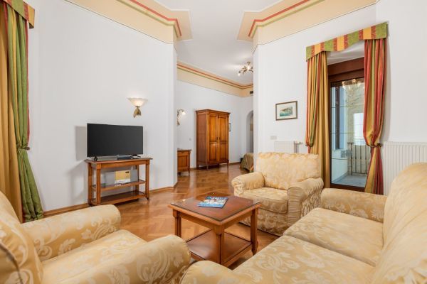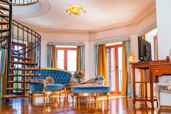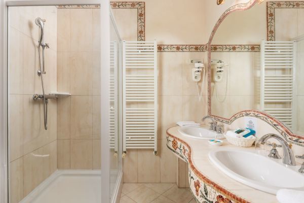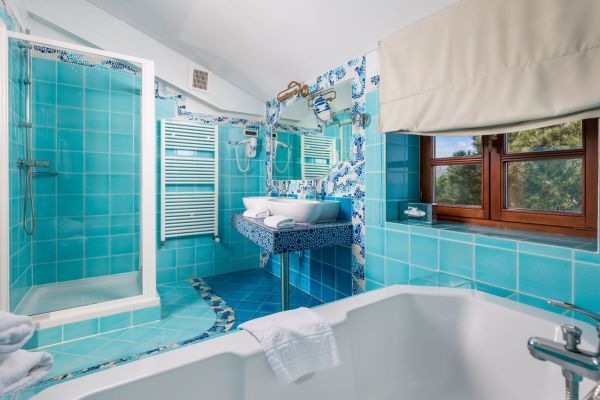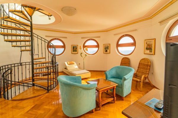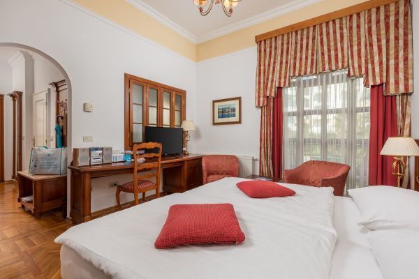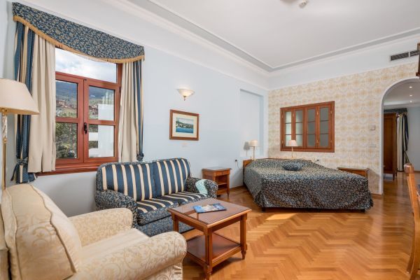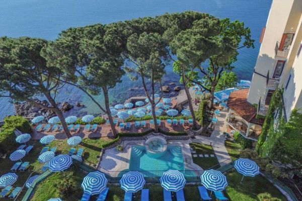 Tutte le camere hanno il pavimento in parquet e sono dotate di bagno con doccia, asciugacapelli, accappatoio, aria condizionata, telefono, TV satellitare, Wi-Fi, minibar e cassaforte. Camera doppia superior: con balcone/loggia lato terra. 25-30 mq Camera doppia Premium Park: con balcone/loggia con vista sul parco. 30-35 mq. Camera doppia superior lato mare: con balcone/loggia vista mare. 25-35 mq. Camera doppia Premium vista mare: con balcone/loggia con vista mare. 30-35 mq. Camera doppia Superior Plus vista mare: con balcone/loggia vista mare. 35 mq. Appartamento familiare: con camera da letto separata e balcone/loggia con vista mare. 50 mq. Camera doppia deluxe vista mare: con balcone/loggia vista mare. 40 mq. Camera doppia fronte mare vista mare: con balcone/loggia vista mare. 35 mq. Executive Suite vista mare: situata nella Villa Neptun, con balcone e vista mare di 60 mq. Suite Belvedere vista mare: con vista mare e terrazza panoramica con vasca idromassaggio, 60 mq. Wellness Suite vista mare: con vista mare e terrazza panoramica con idromassaggio, nella torre di Villa Neptun. 80 mq.