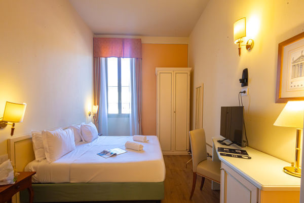 DOPPIA CLASSIC: La Doppia Classic, di circa 15 mq, offre un ambiente accogliente, semplice e funzionale: composta da un letto matrimoniale o due letti singoli, una scrivania e un bagno privato con doccia e set di cortesia. La finestra si affaccia su un tranquillo vicolo del centro storico di Pallanza, garantendo un soggiorno rilassante immerso nel fascino della zona. Progettata per chi cerca comodità, perfetta per viaggi brevi, di lavoro o di piacere. È una scelta pratica ma curata, con un design classico e arredi sobri.