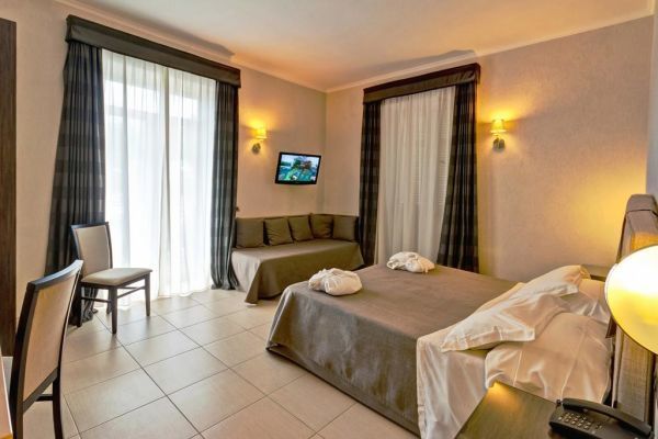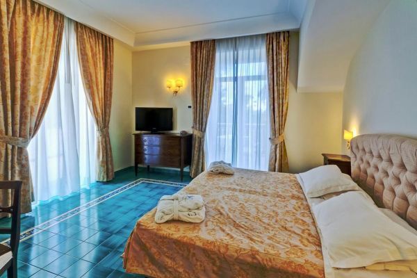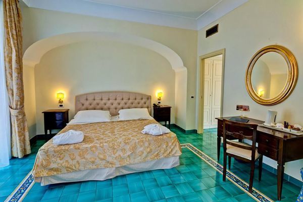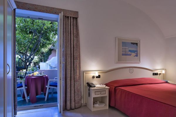 59, arredate con colori pastello tipici dell'architettura mediterranea, sono dotate di balcone o terrazzo, servizi privati, phon, telefono, tv sat con canali Sky, Wi-Fi, minibar, cassaforte e aria condizionata (15/06-15/09). Si suddividono in: classic, accoglienti e confortevoli; superior, recentemente ristrutturate; junior suite, con piccola anticamera e angolo salotto con divano letto; suite, con piccola anticamera e angolo salotto con divano letto.