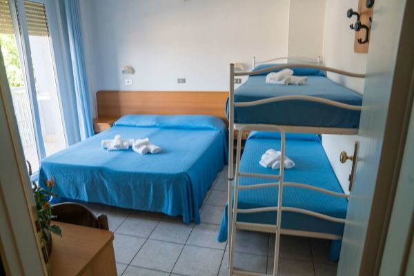 La struttura offre camere essenziali ma confortevoli, tutte dotate di balcone per godere della brezza marina e del relax tipico della riviera. Ogni dettaglio è pensato per far sentire gli ospiti subito a proprio agio, permettendo di vivere solo il meglio del mare e del divertimento in famiglia: Wi-Fi gratuito in tutta la struttura, comodo parcheggio per chi arriva in auto, biciclette a disposizione degli ospiti per esplorare la zona e un’area giochi dedicata ai bambini.