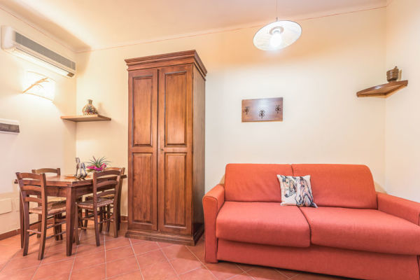 BILOCALE 3 PERSONE : Appartamento di circa 28 mq, adatto ad ospitare da 3 persone, con camera doppia, soggiorno con divano letto, angolo cottura e bagno con doccia. Dispone di Tv Sat, phon, telefono, asciugacapelli, wi-fi, aria condizionata e riscaldamento. L'angolo cottura è dotato di fornello a induziome, frigo con freezer, microonde su richiesta.