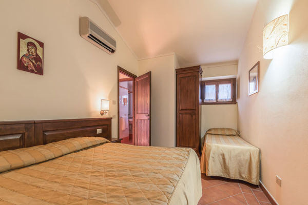TRIPLA: Camera di circa 18 mq, confortevole e luminosa, pensata per chi viaggia in famiglia o con amici. Arredata con uno stile caldo e rustico, tipico del casale ligure, combina elementi tradizionali con comfort moderni. Gli ambienti sono ampi e armoniosi, dotati di un letto matrimoniale e un comodo letto singolo, perfetti per garantire relax a tutti gli ospiti.
