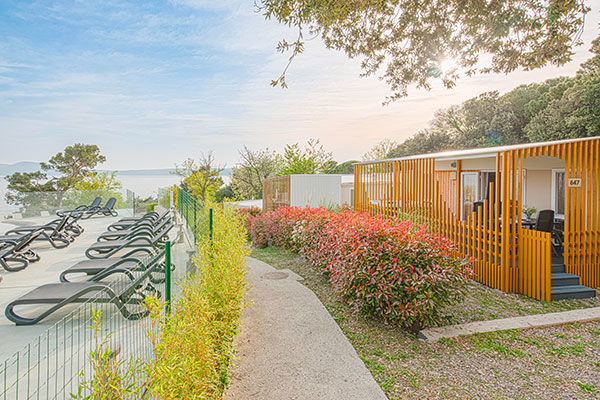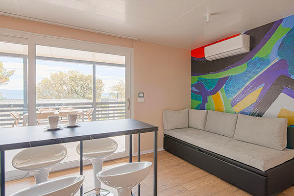 Con un design vivace e moderno, una jacuzzi privata e terrazze uniche con viste spettacolari e privacy totale, le case mobili garantiscono un comfort eccellente e una casa ideale lontano da casa. Il campeggio è circondato dal verde e dalla rigogliosa vegetazione mediterranea e il punto focale è il complesso di piscine all'aperto con due cascate, situato in prossimità del mare, e c'è anche una piscina per i più piccoli con numerose strutture di accompagnamento. Godetevi gli splendidi dintorni e il microclima benefico, che consiste in una combinazione unica di aria di mare e di montagna, arricchita con aerosol medico. Se volete rimanere attivi, noleggiate l'attrezzatura presso il centro immersioni e provate a esplorare le profondità sottomarine, fate una gita panoramica in barca o optate per una gita di un giorno e scoprite le bellezze naturali dei parchi nazionali di Plitvice e Risnjak