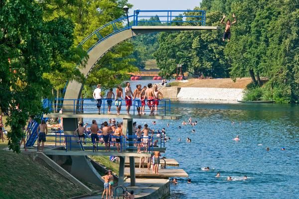 Spiaggia: River beach in front of the hotel 100 m