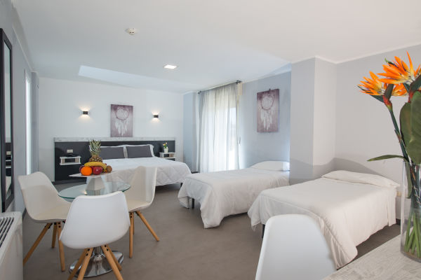 Le 247 camere, recentemente ristrutturate, sono distribuite in due edifici di 4 piani. Le camere Classic fino a 4 posti letto sono tutte dotate di balconcino. Disponibili, con supplemento, camere con vista mare laterale (vista parziale della spiaggia dal balcone). Tutte le camere dispongono di aria condizionata, minifrigo, TV con canali multilingue, cassetta di sicurezza, servizi con doccia o vasca e asciugacapelli, balcone. Sono disponibili camere doppie per persone con disabilità: la struttura è particolarmente adatta per ospiti con disabilità motorie grazie alla presenza di molte aree facilmente accessibili anche con sedia a rotelle.