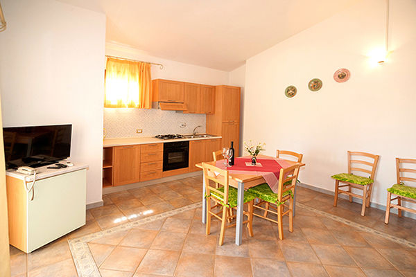 Gli appartamenti, semplici e confortevoli, dispongono di patio o terrazzo arredato con tavolo e sedie, servizi privati, asciugacapelli (su richiesta), biancheria da letto e da bagno (cambio biancheria su richiesta a pagamento), aria condizionata, angolo cottura, divano letto e Tv.