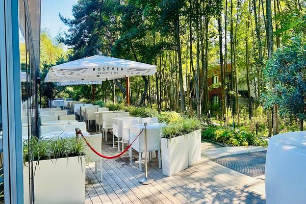 Das Resort erstreckt sich über eine Fläche von 7 Hektar und wurde mit großem Respekt für die Natur entworfen. Die minimalistische Architektur fügt sich harmonisch in den umliegenden Wald und den prachtvollen Garten ein und schafft so eine perfekte Verbindung zwischen Comfort, Eleganz und natürlicher Schönheit.