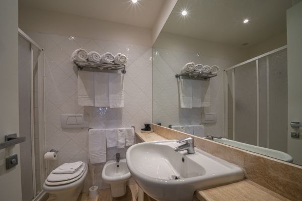 Ideale per tre persone, la camera è dotata di letto matrimoniale ed un letto singolo, con arredo in stile moderno semplice e funzionale. Il bagno privato è dotato di asciugacapelli e set di prodotti da bagno.