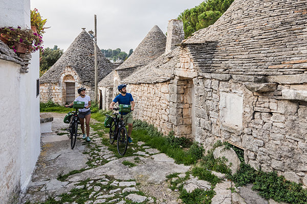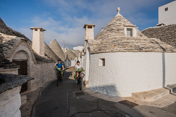 La prima giornata inizia con una pedalata da Alberobello verso Matera, tra campagne e colline della Murgia. Il percorso, prevalentemente scorrevole con qualche leggera salita, permette di immergersi nei panorami rurali della regione, tra campi e muretti a secco. Una volta arrivati a Matera, famosa per i suoi Sassi, avrai la possibilità di passeggiare tra antiche abitazioni rupestri, chiese scavate nella roccia e punti panoramici mozzafiato. La pausa pranzo nel centro storico ti darà l’occasione di assaporare piatti tipici locali e di esplorare la città liberamente. Nel tardo pomeriggio si ritorna ad Alberobello attraverso le colline pugliesi, chiudendo una giornata intensa e affascinante. Pernottamento ad Alberobello.